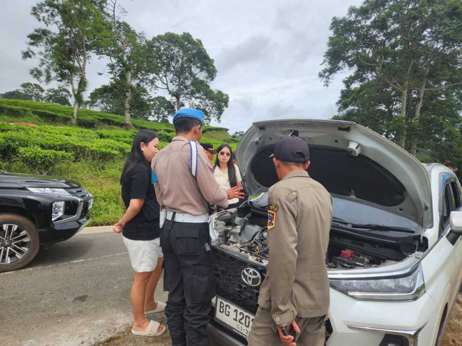 Personel Sat Lantas Polres OKU terlihat memberikan himbauan dan peneguran secara humanis kepada pengendara motor yang tidak menggunakan helm dan berboncengan lebih dari satu orang.